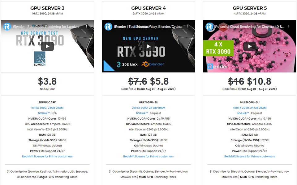 Rendering service supports powerful RTX3090