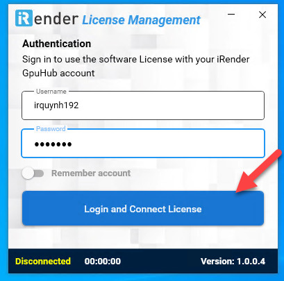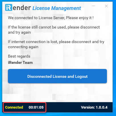 - To use iRender’s Redshift license for next time, just simply connect to the server and run the License Management app again.