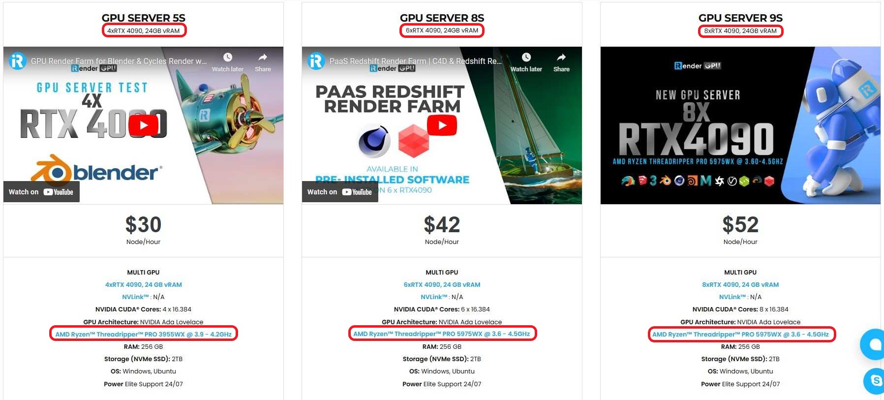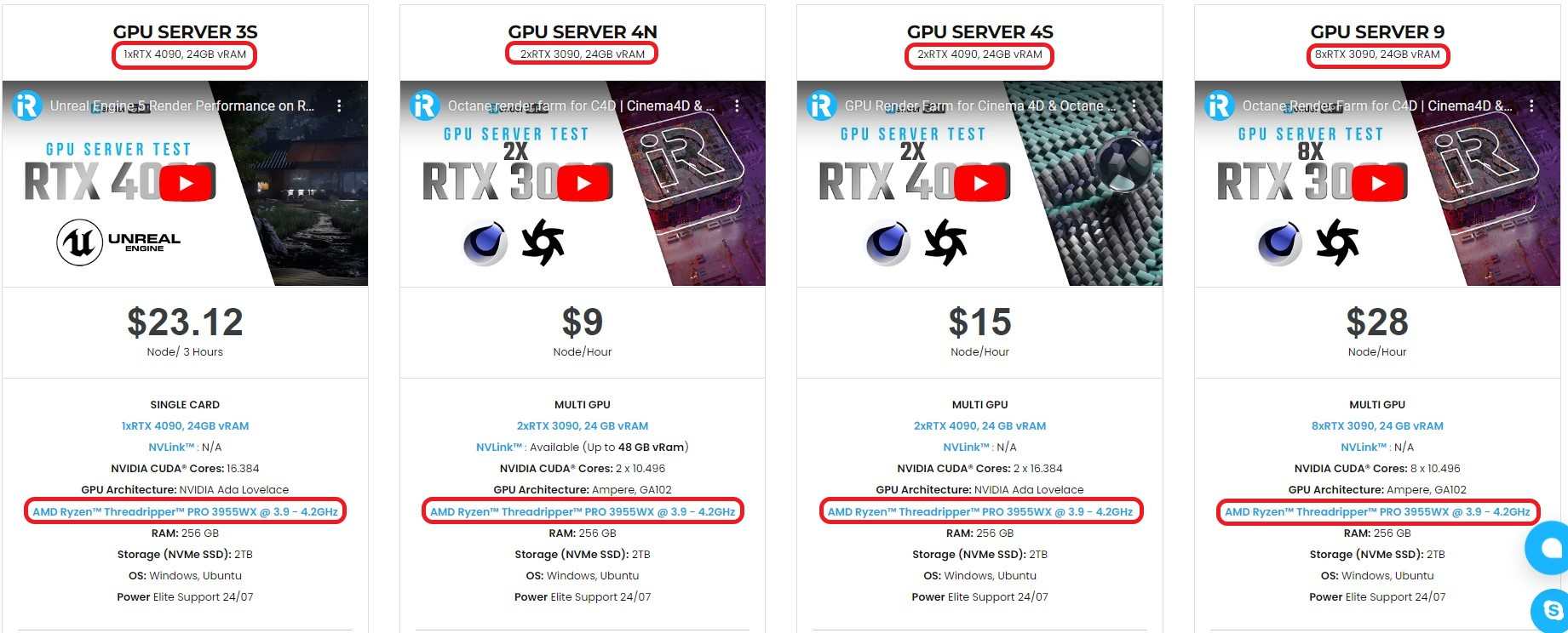 V-Ray can utilize GPU rendering power, we choose to provide RTX 3090 and RTX 4090. You can refer to this article to see how V-Ray performs on these graphics card, especially RTX 4090 being the fastest when it comes to V-Ray rendering.