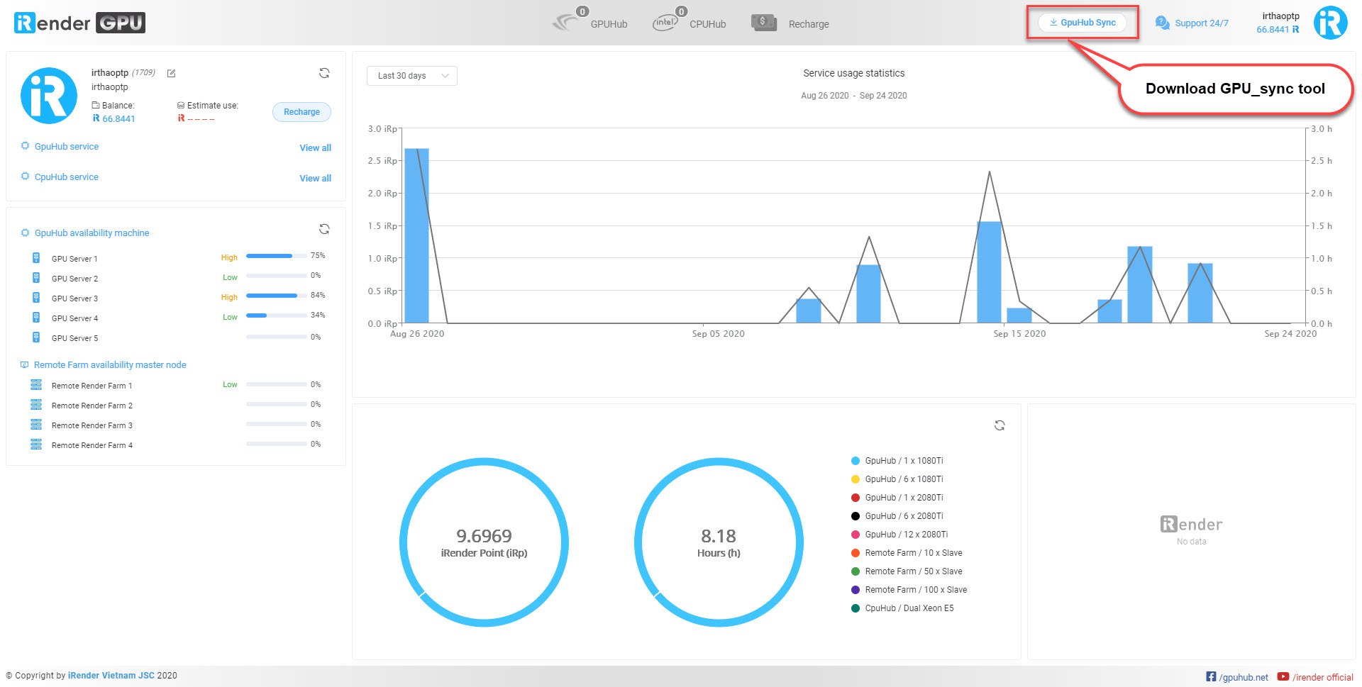After successfully creating an account here. You will need to download GPUHub Sync. To do this, either click on the GPUHub Sync tool download button on the iRender interface after login, or use one of these links below.