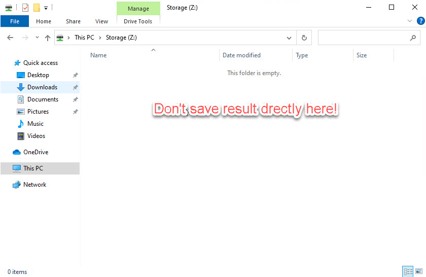 Note: When copying data from C: drive to Z: drive, you should name the folder differently from the original folder name in the Z: drive. To avoid the case that the copied data with the original data are overlapped and cause loss of data.
