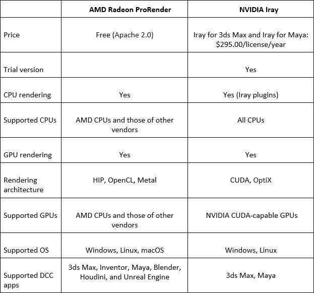 A brief overview of AMD Radeon ProRender and NVIDIA Iray