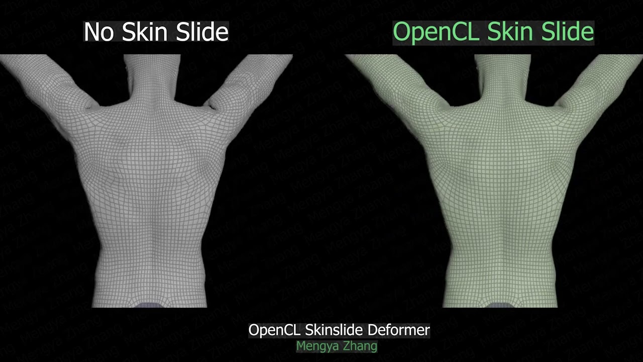 The deformer creates realistic skin sliding effects without requiring an underlying tissue simulation. The video above demonstrates its application directly on the Point Deform skin mesh from a recent muscle simulation project.