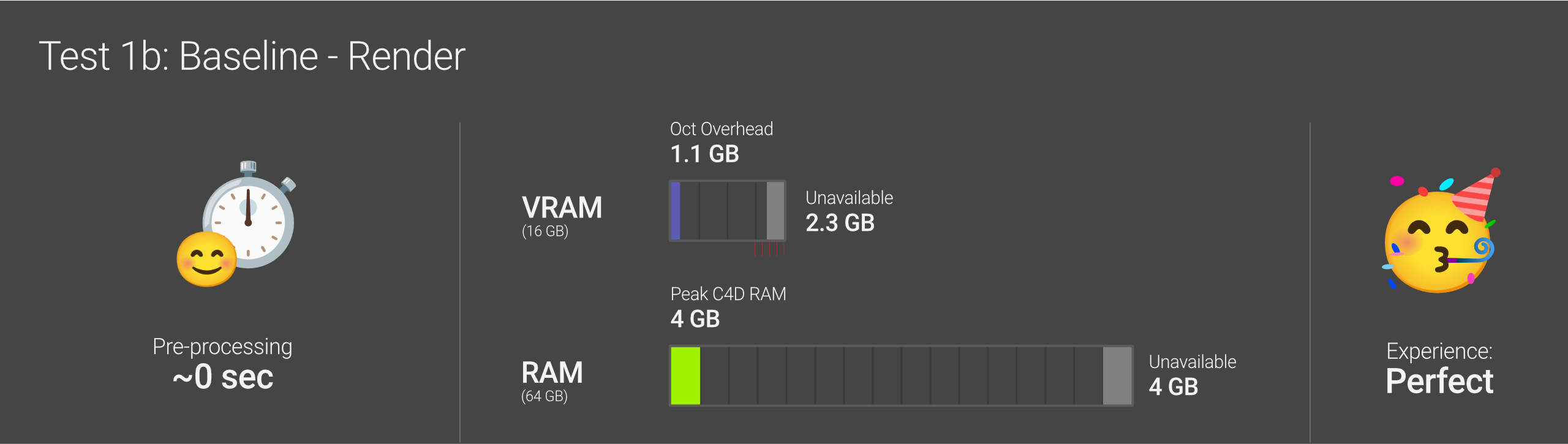 - Any RAM allocated to OOC is unavailable for other preprocessing tasks carried out by C4D and Octane. This further degrades performance.