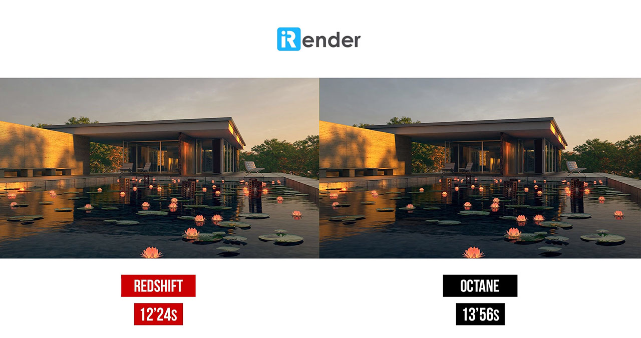 Welcome back to iRender. In the previous post, we made a comparison between Redshift and Octane in terms of speed and denoise. Today, we continue with the comparison of 2 RENDER ENGINE right for Cinema 4D software. We’re going to render two main scenes, including 1 indoor and 1 outdoor. In the indoor scene, it has simple settings with HDR lights. In the outdoor scene, we’ll compare 2 different lightings. They’re midday lighting and sunset lighting. Let’s get started.