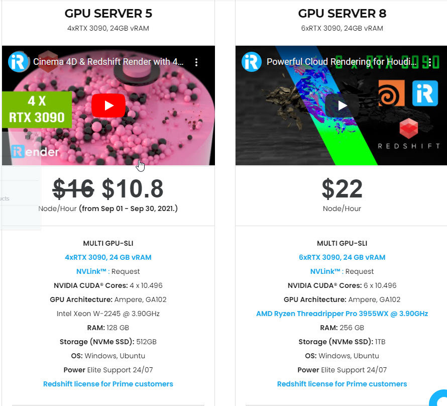 And if you are looking for a Cloud Rendering solution to speed up your render time on Octane render, iRender provides various multi-GPU-servers (4 RTX 3080 and 4 RTX 3090) which are the most effective for Octane rendering in multi GPU cards coming with the following configuration specifications: