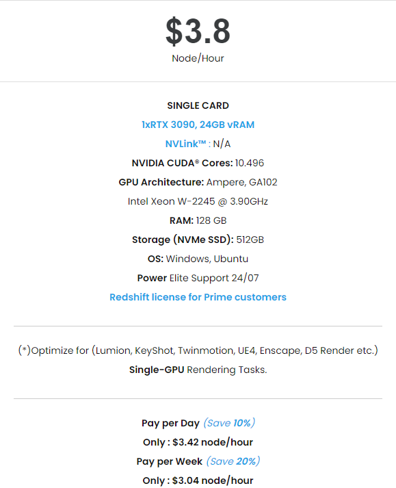 Hope that with these above 3 simple steps, Rhino and Enscape users can make a world of difference! Whether you are a student presenting to your classmates and professors, or a professional presenting to clients, stakeholders, and/or the public, you can have more confidence that they will quickly and accurately understand your design intent. This can lead to quicker approvals and higher client satisfaction. And if you are struggling with your low-end PC while doing your work, and you are looking for a solution that could help you to boost your workflow and especially your render time smoothly and efficiently. Let’s choose iRender Cloud Rendering Service.  At iRender, we provide servers that are suitable with Enscape users, with the most powerful graphic card nowadays such as RTX 3090 at the price from 3.8 usd per machine hour with the detailed configuration below: